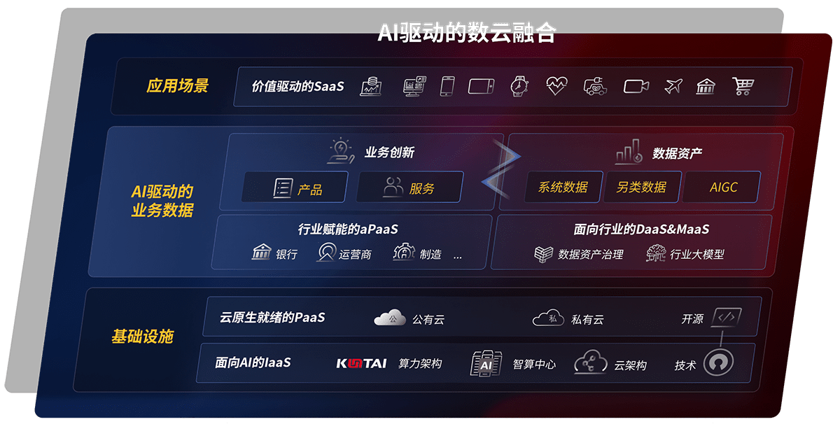 以意昂2鲲泰全国产化计算产品帮助金融行业客户构筑数字底座;以丰富的AI和数云产品及方案,,,,保障数据安全,,,,挖掘数据价值,,,提升服务品质